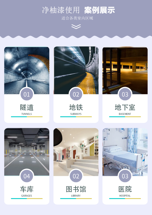 可用于隧道、地鐵、防空洞、地下室等地下建筑;水電站、設(shè)備間、倉(cāng)庫(kù)、車庫(kù)、冷庫(kù)等易潮濕場(chǎng)所;博物館、體育館、收藏室、圖書館、禮堂、車站、機(jī)場(chǎng)等公共建筑;醫(yī)院、自來水廠、食品廠等衛(wèi)生場(chǎng)所。